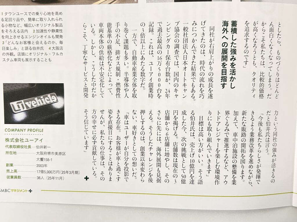 画像ギャラリーはこちらご覧ください。➤ 雑誌『オートキャンパー11月号』ユーアイビークルのページギャラリー